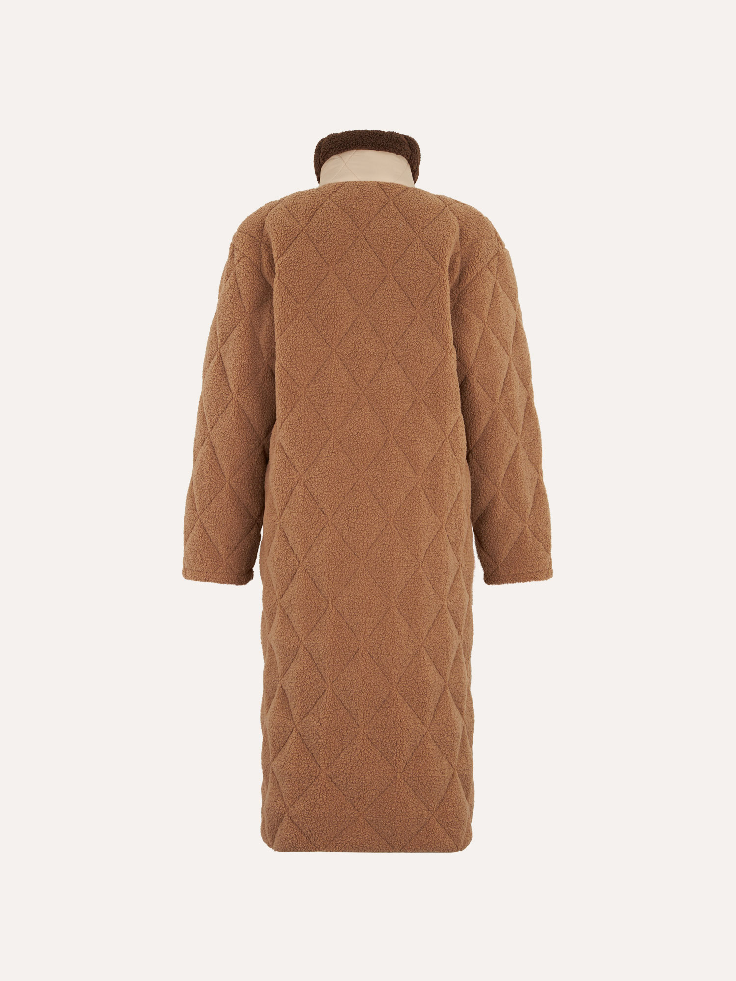 CAPPOTTO LUNGO TEDDY TRAPUNTATO A ROMBI