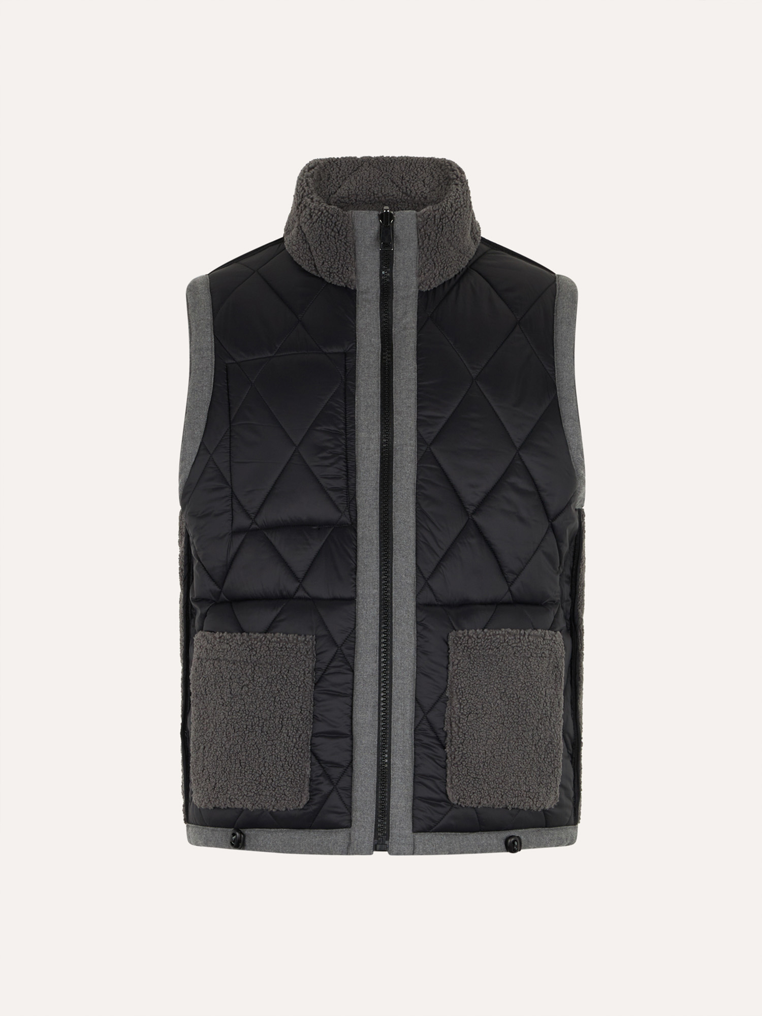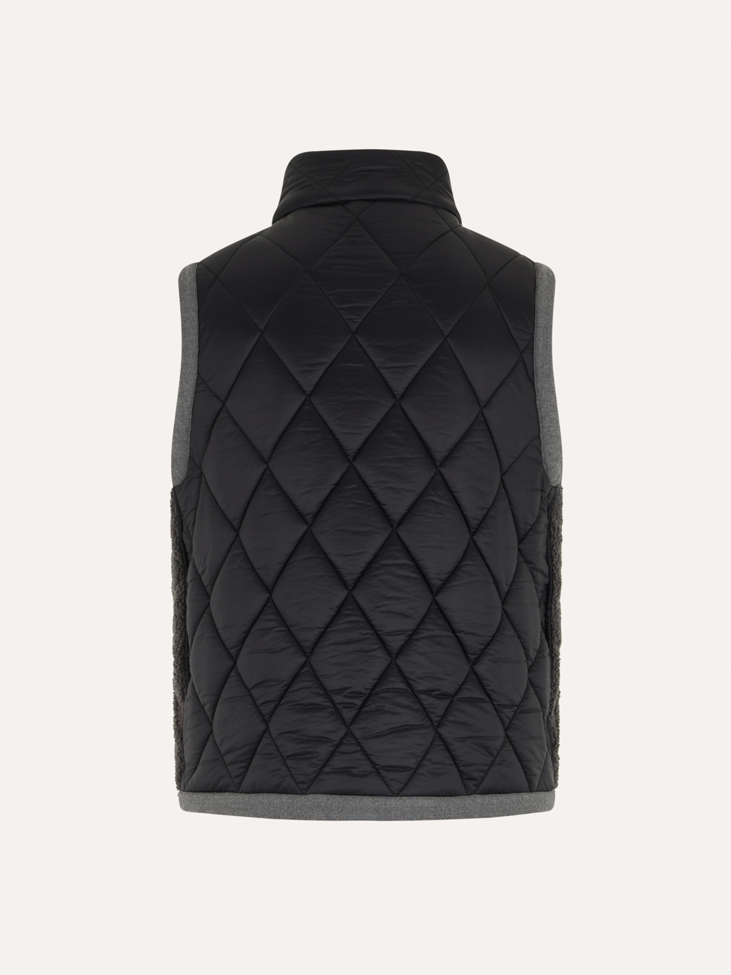 Questo gilet double face Ballantyne incarna la volontà del brand di proporre capi ispirati allabbigliamento da montagna. Il corpo principale, realizzato in lana vergine, offre una naturale consistenza e resistenza, mentre imbottitura e fodera assicurano protezione ottimale anche alle temperature più rigide. Il collo alto aggiunge un tocco di modernità e la possibilità di indossare entrambi i lati garantisce praticità e versatilità. La trapunta, con le cuciture che creano il motivo a rombi, caratterizza il capo richiamando lheritage del brand.