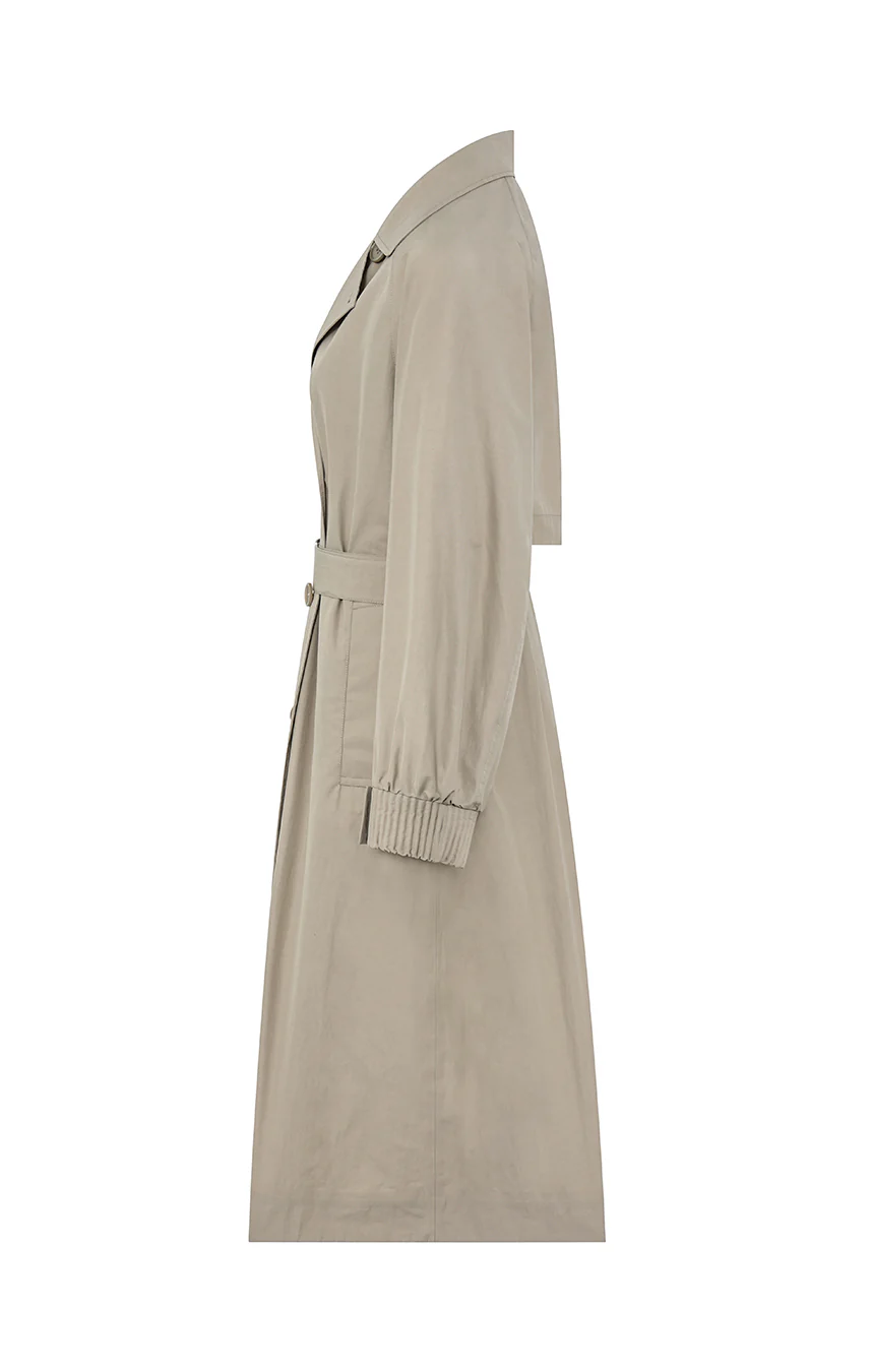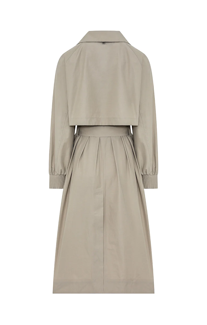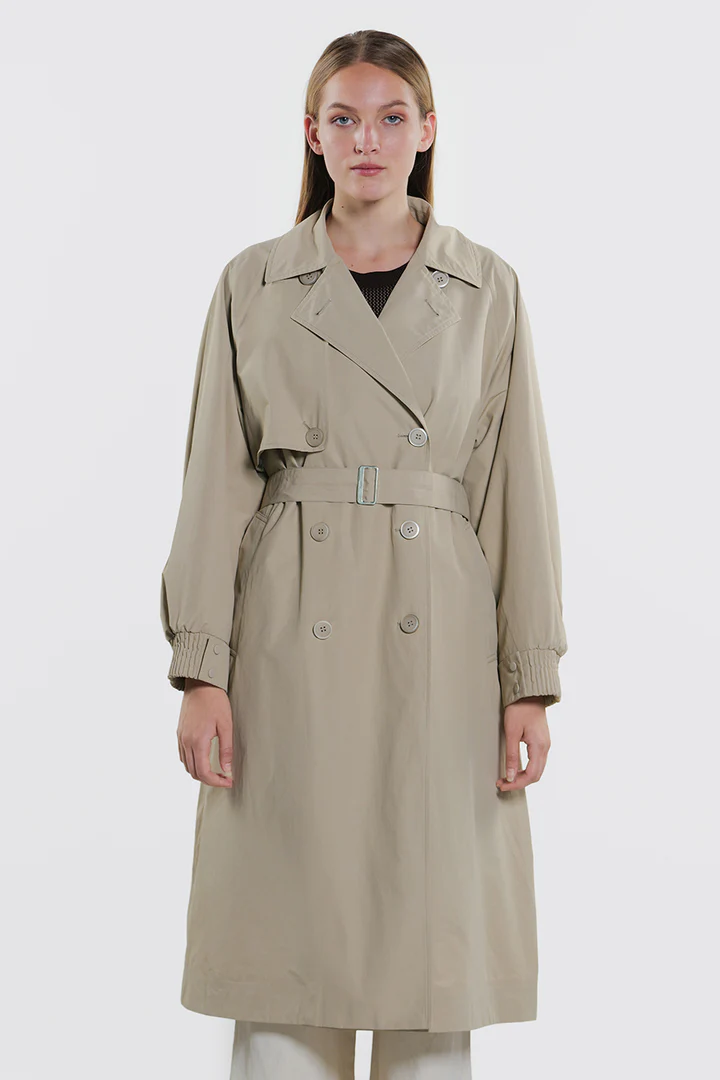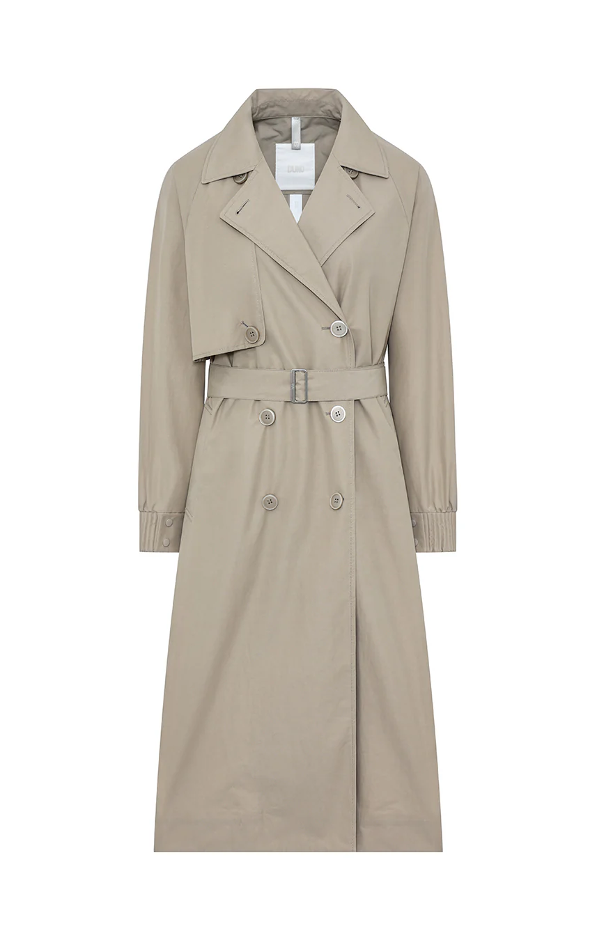 Trench lungo doppio petto realizzato in cotone tecnico