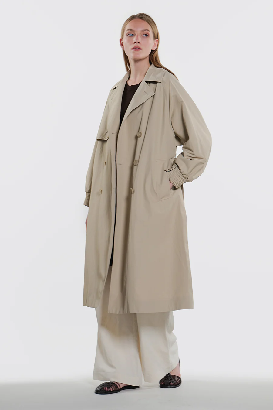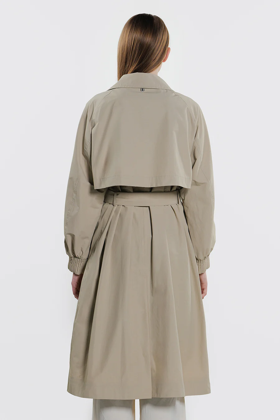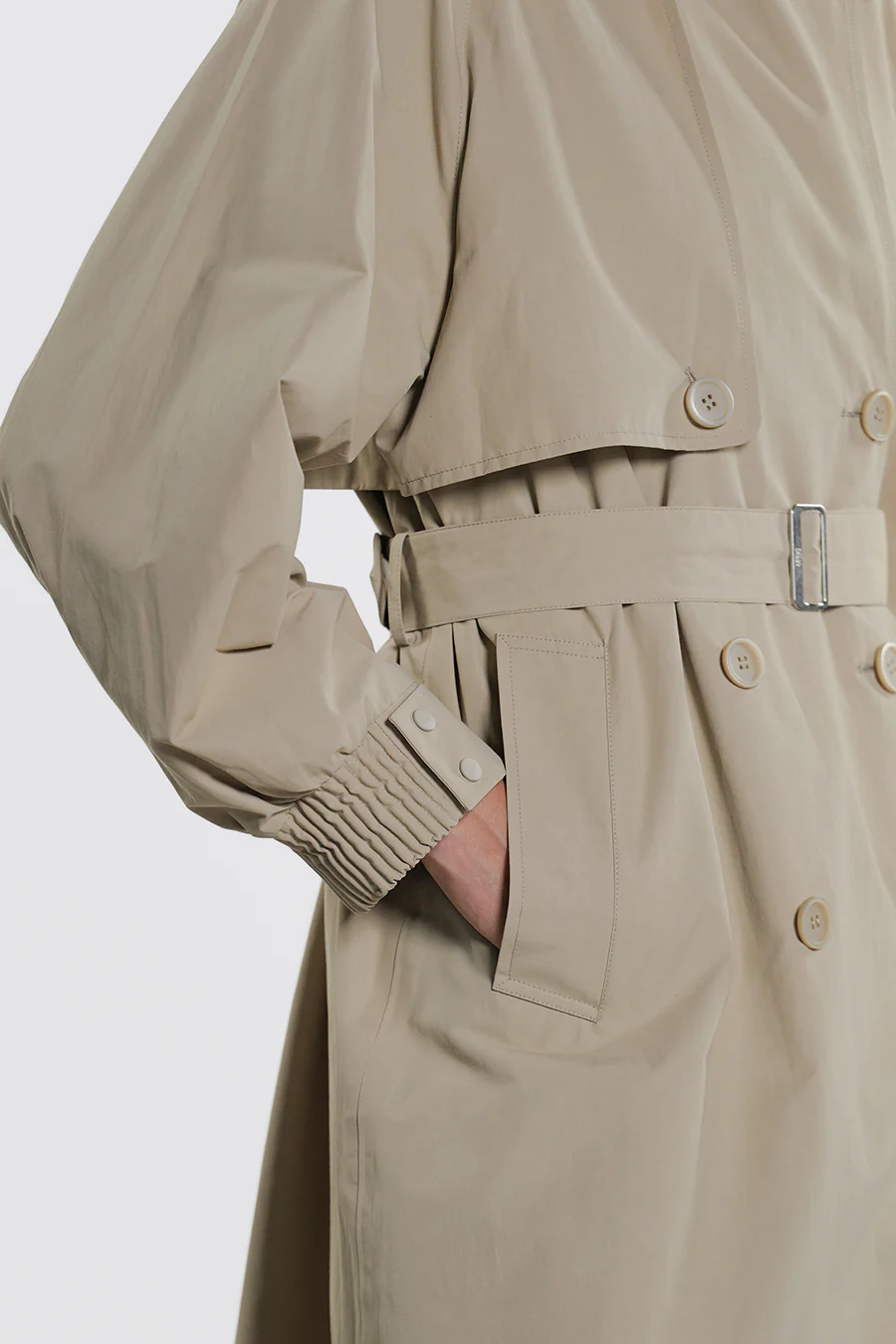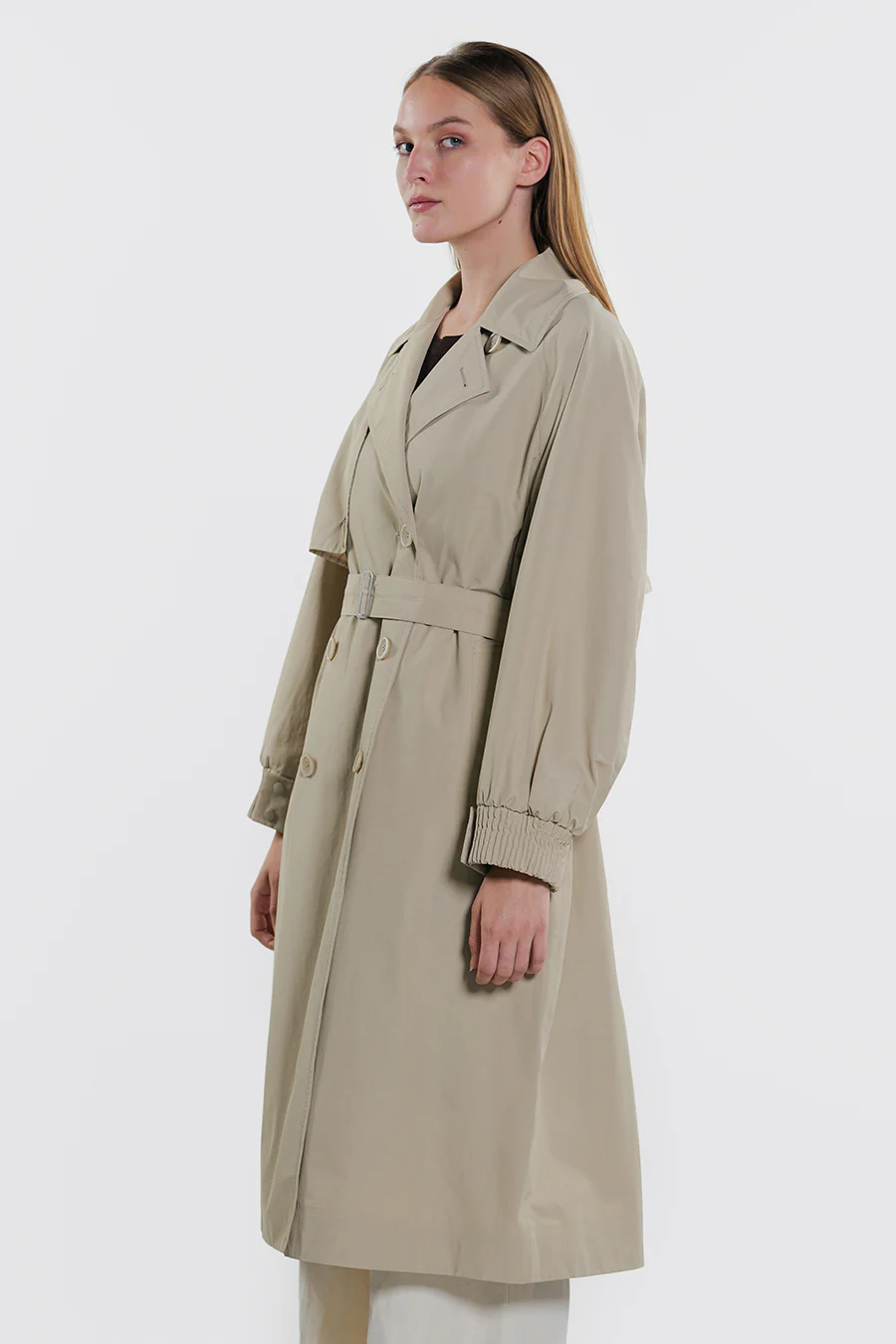 Trench lungo doppio petto realizzato in cotone tecnico