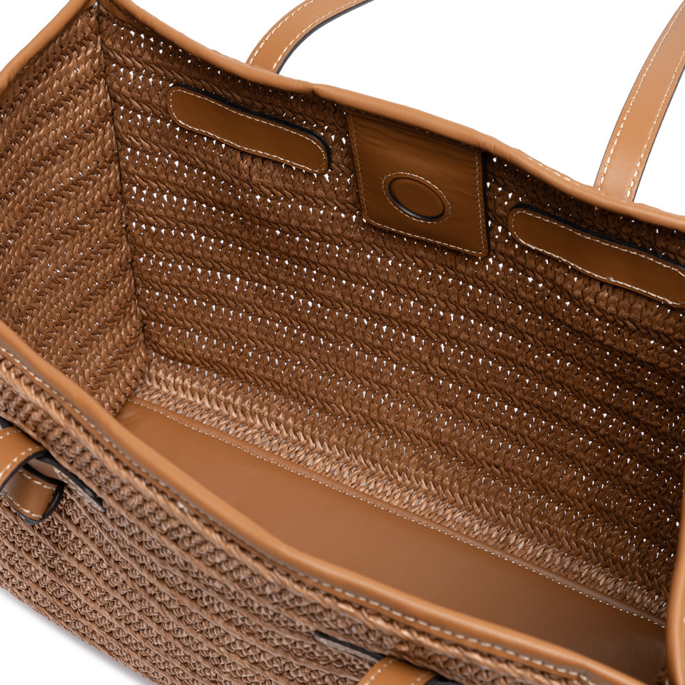 La shopping Marcella by Gianni Chiarini Firenze è realizzata in paglia effetto stuoia per un look fresco e naturalmente estivo. Leggera e contemporanea, è impreziosita da profili in pelle e manici tono su tono. La struttura sfoderata e la pochette interna con zip ne esaltano praticità e leggerezza. Ideale per completare con un tocco rustico chic anche i look più dinamici.