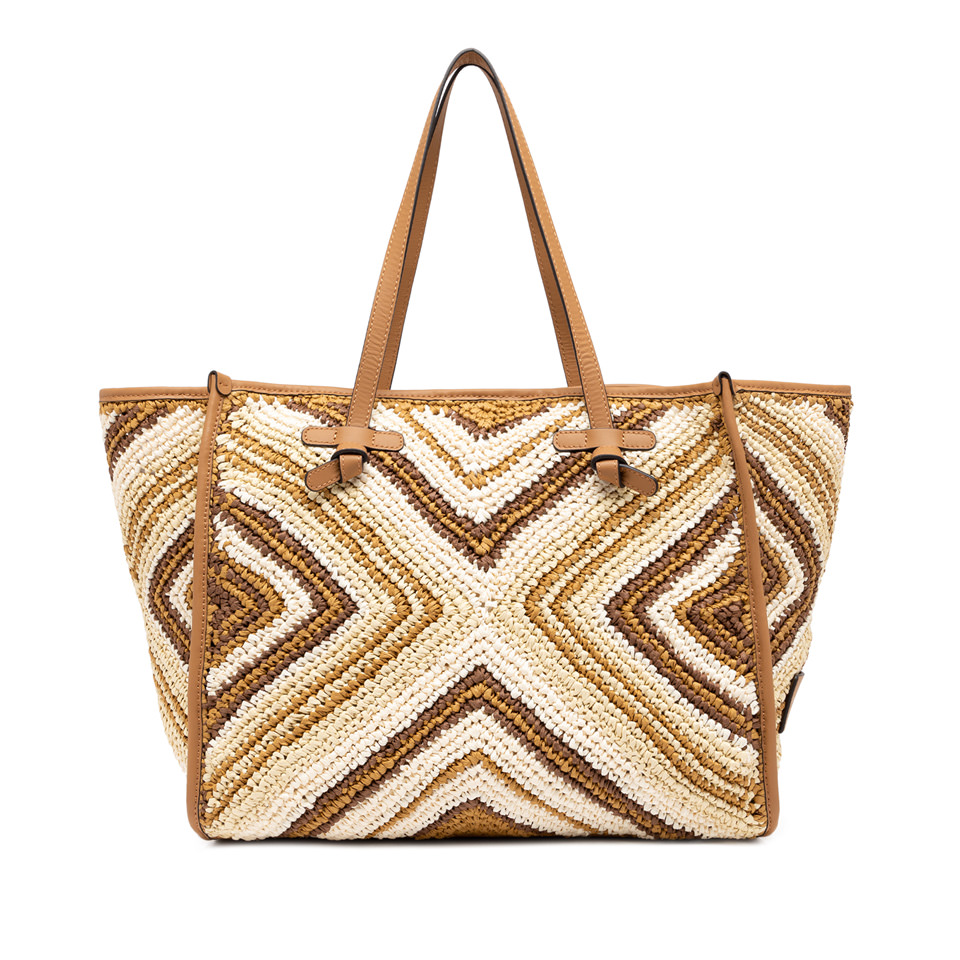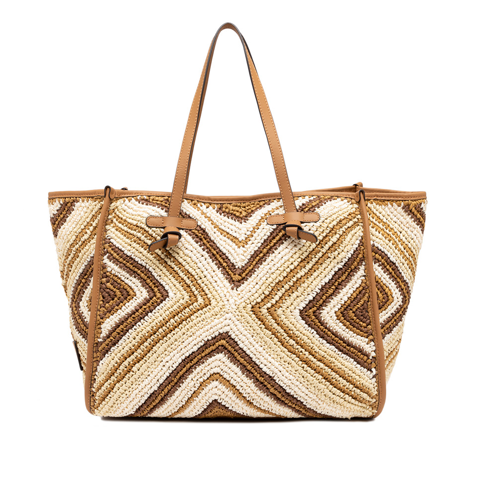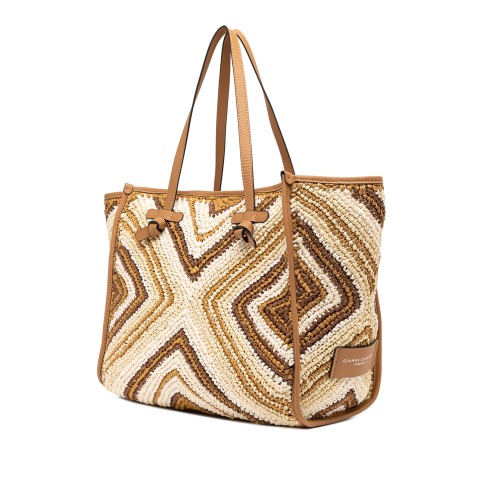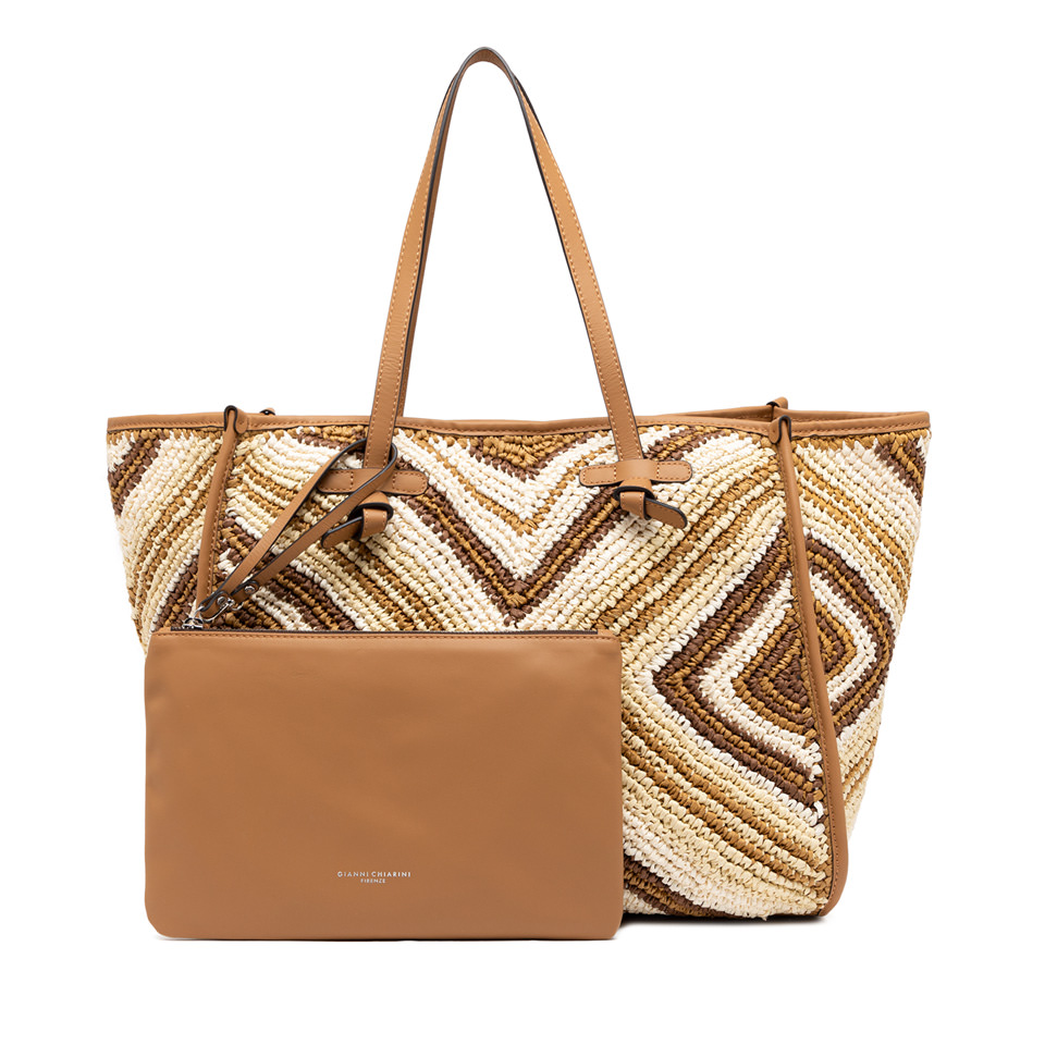 La shopping Marcella by Gianni Chiarini Firenze è realizzata in paglia intrecciata, con profili in pelle a contrasto che ne valorizzano il design essenziale e sofisticato. Perfetta per la stagione estiva, è dotata di manici in pelle, chiusura con magnete e una pochette coordinata in pelle. Un accessorio pratico e distintivo, ideale per accompagnare ogni look quotidiano.