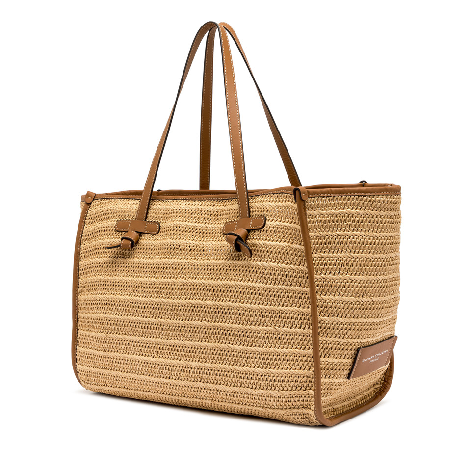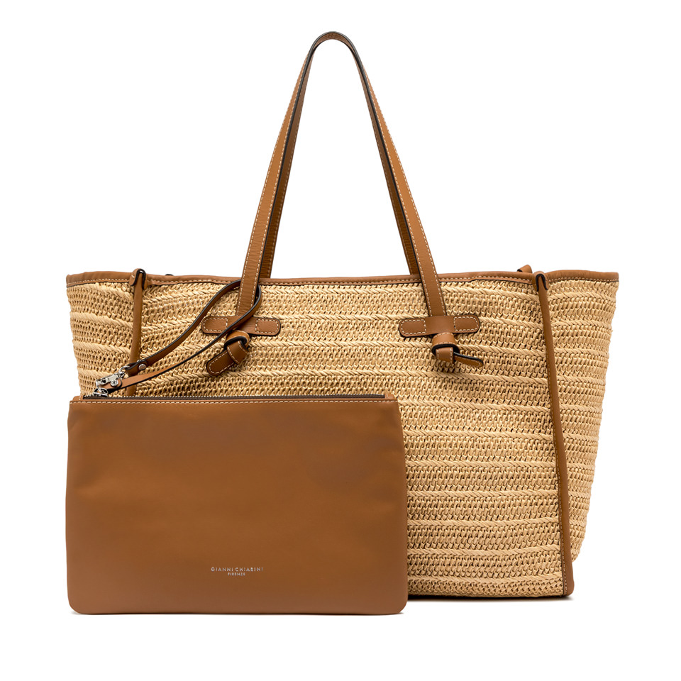 La shopping Marcella by Gianni Chiarini Firenze è realizzata in paglia effetto stuoia per un look fresco e naturalmente estivo. Leggera e contemporanea, è impreziosita da profili in pelle e manici tono su tono. La struttura sfoderata e la pochette interna con zip ne esaltano praticità e leggerezza. Ideale per completare con un tocco rustico chic anche i look più dinamici.
