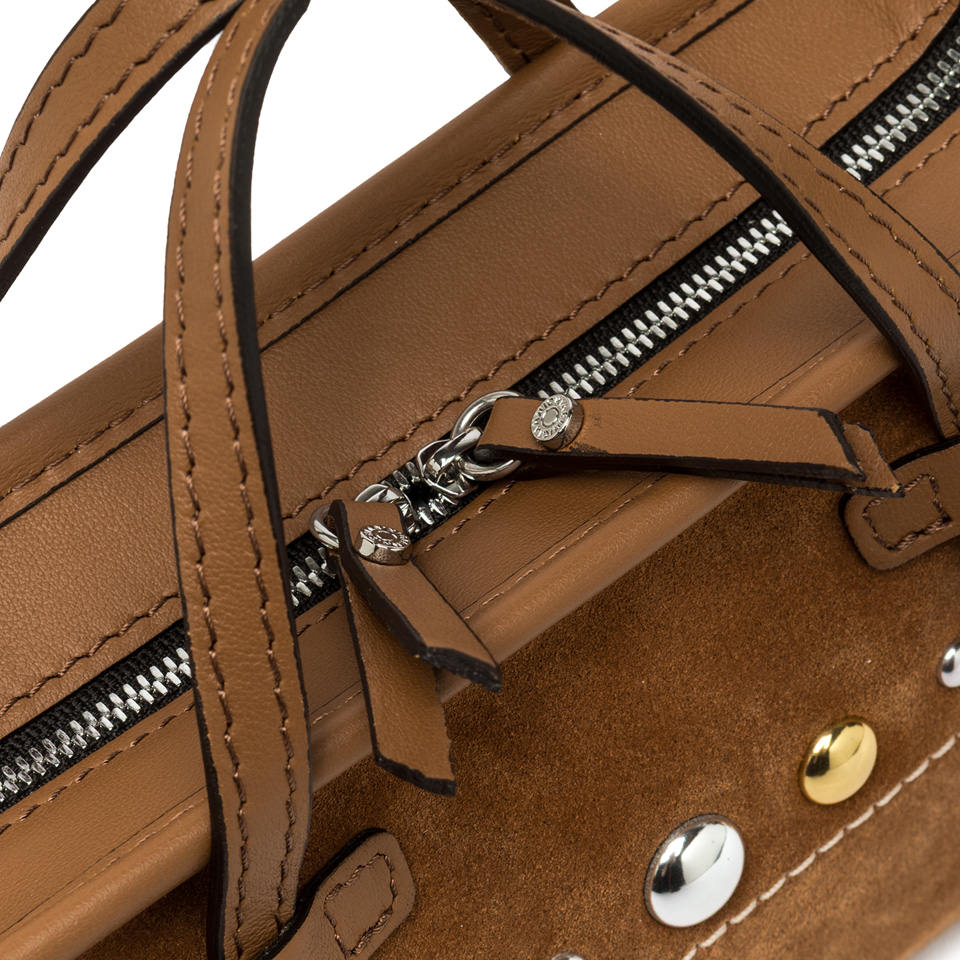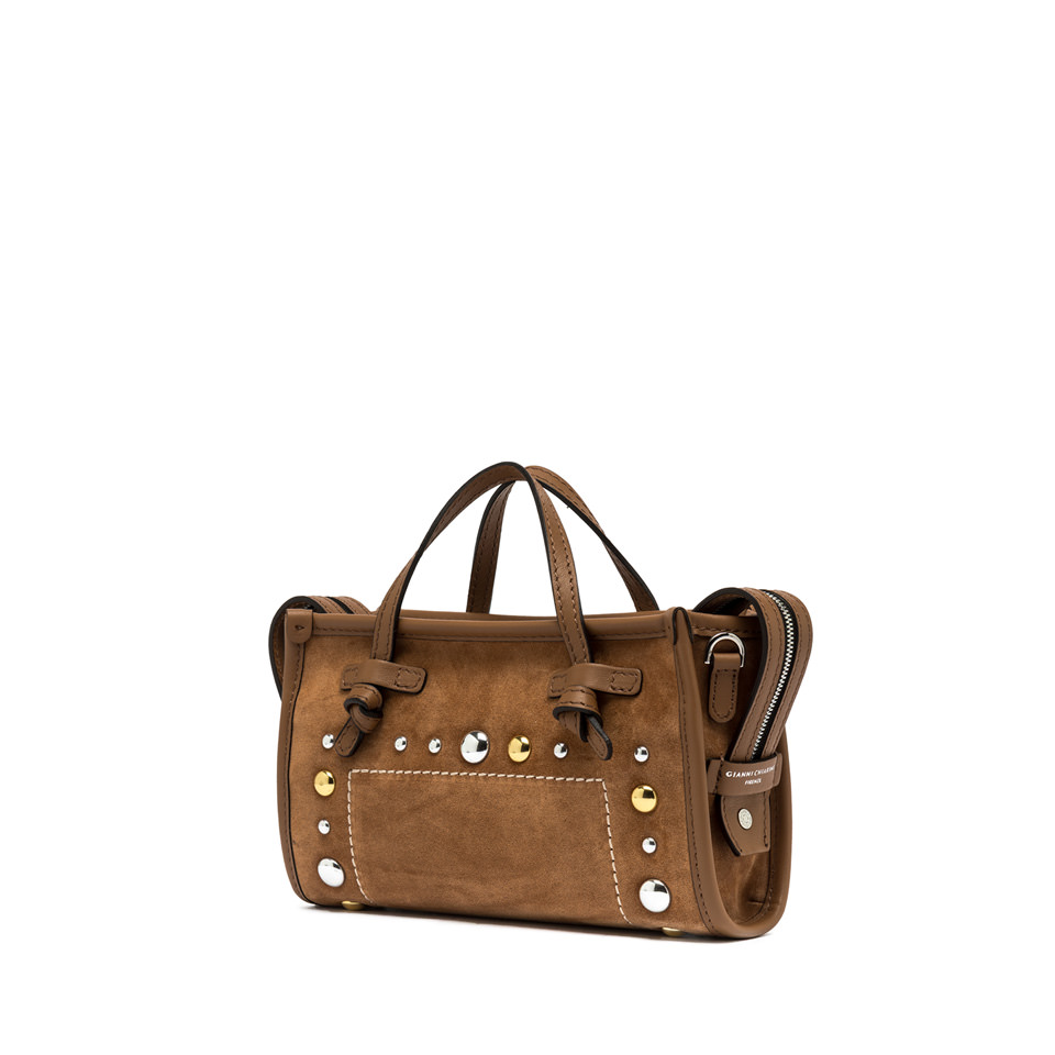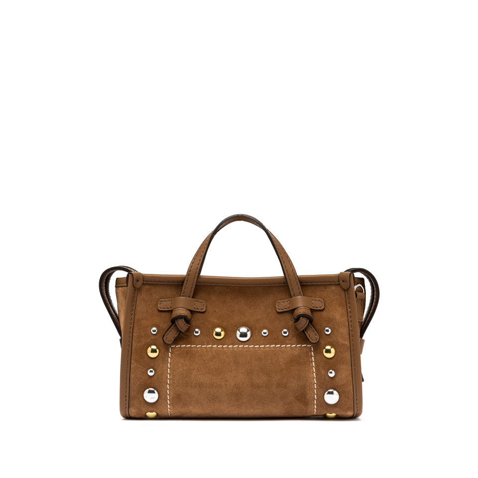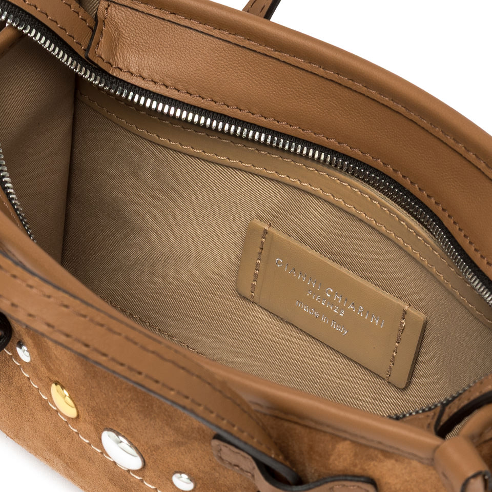 La Marcella Joy by Gianni Chiarini, è un perfetto equilibrio di eleganza e carattere. Realizzata in pelle scamosciata, presenta impunture a contrasto e borchie in metallo che donano un'anima Western al modello. Il design minimal è arricchito da profili in pelle. Caratterizzata da una zip di chiusura con una doppia portabilità: a mano e crossbody grazie alla sua fine tracolla in pelle.