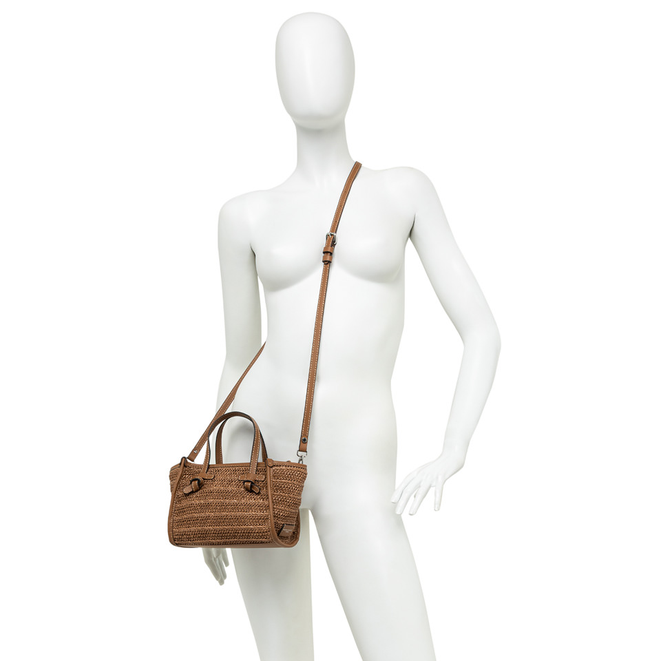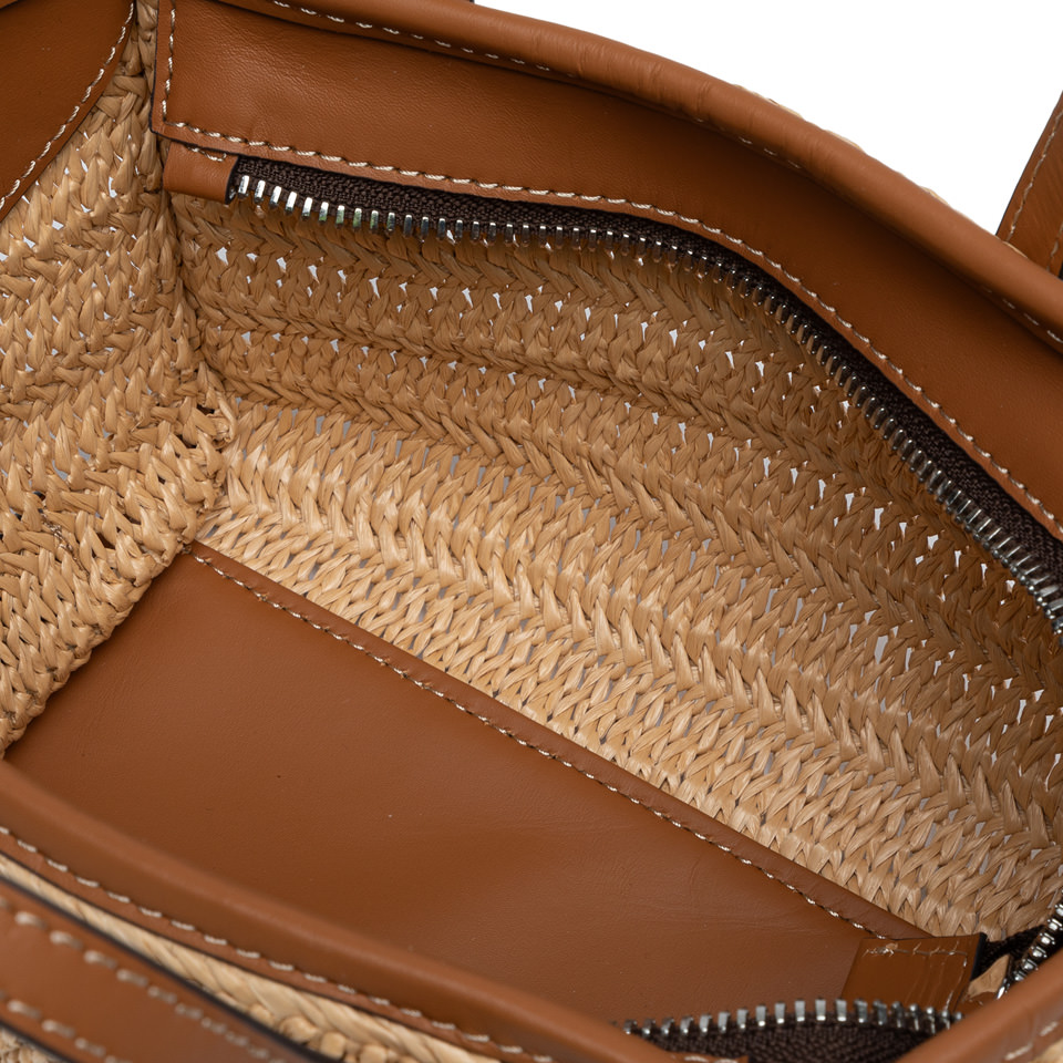 La Miss Marcella by Gianni Chiarini Firenze è accessorio dall' estetica leggera e naturale, perfetta per completare i look della stagione. Realizzata in paglia effetto stuoia per un look fresco e naturalmente estivo. Leggera e contemporanea, è impreziosita da eleganti finiture in pelle. Compatta e versatile, può essere portata a mano o crossbody grazie alla sottile tracolla in tono.