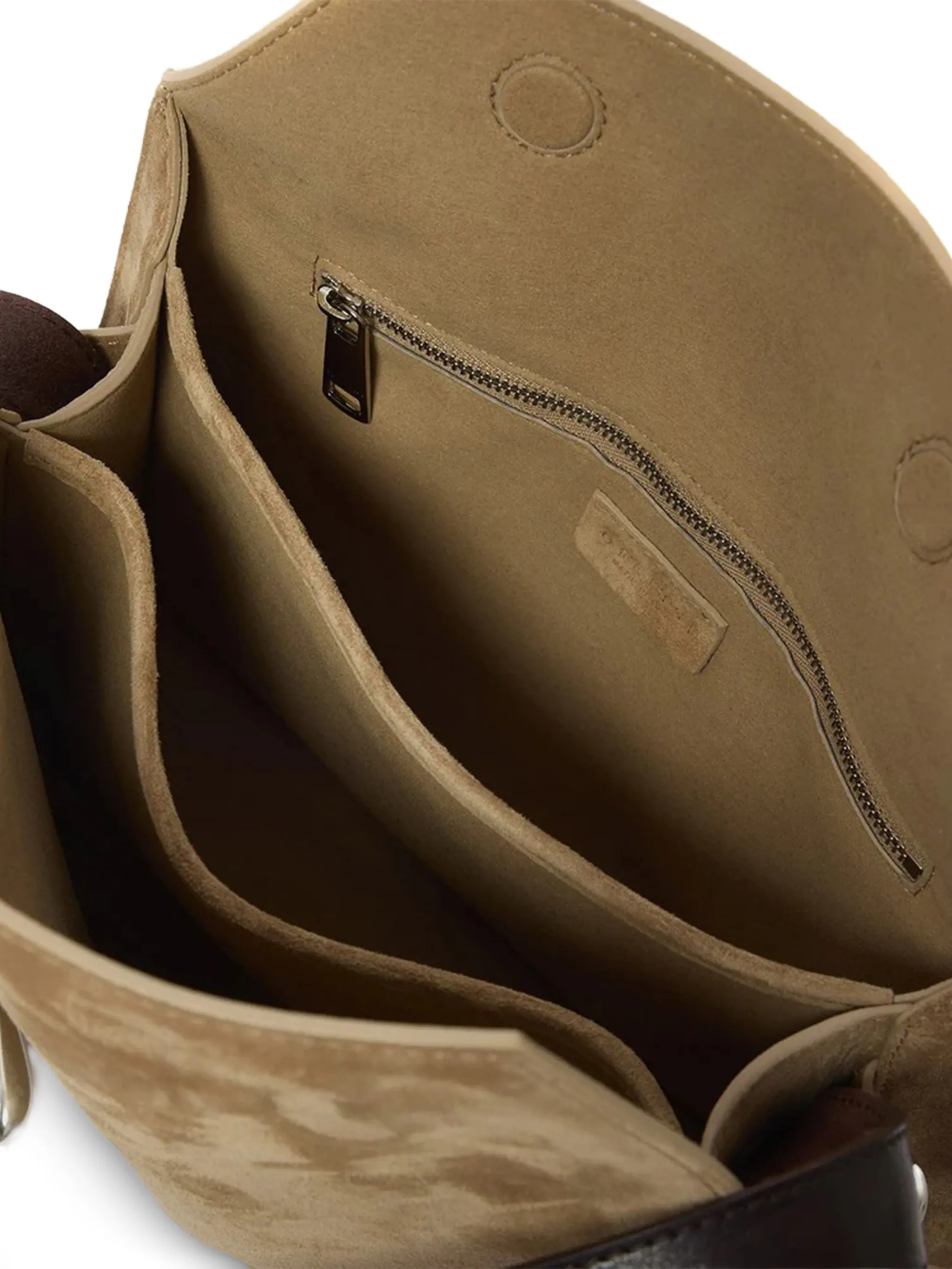 Borsa a spalla Trinity Peach Small in suede e cuoio Biscotto