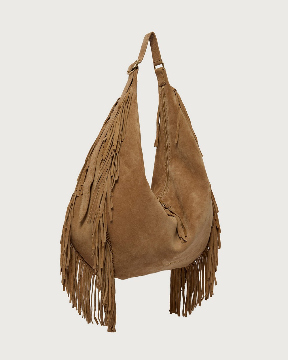 Borsa Isola Peach Fringe Large a spalla in suede