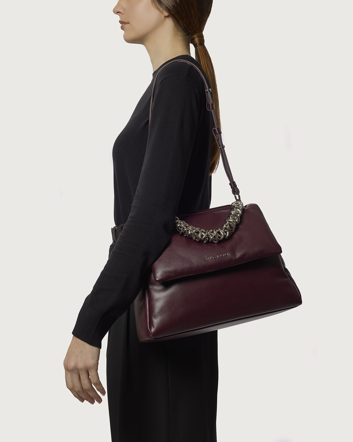 Sveva M è la dimensione perfetta per chi cerca praticità senza rinunciare allo spazio, arricchita dal dettaglio distintivo del manico chain, un elemento che esalta l'artigianalità Orciani, con la sua lavorazione sofisticata e intrecciata, per un tocco di esclusività.