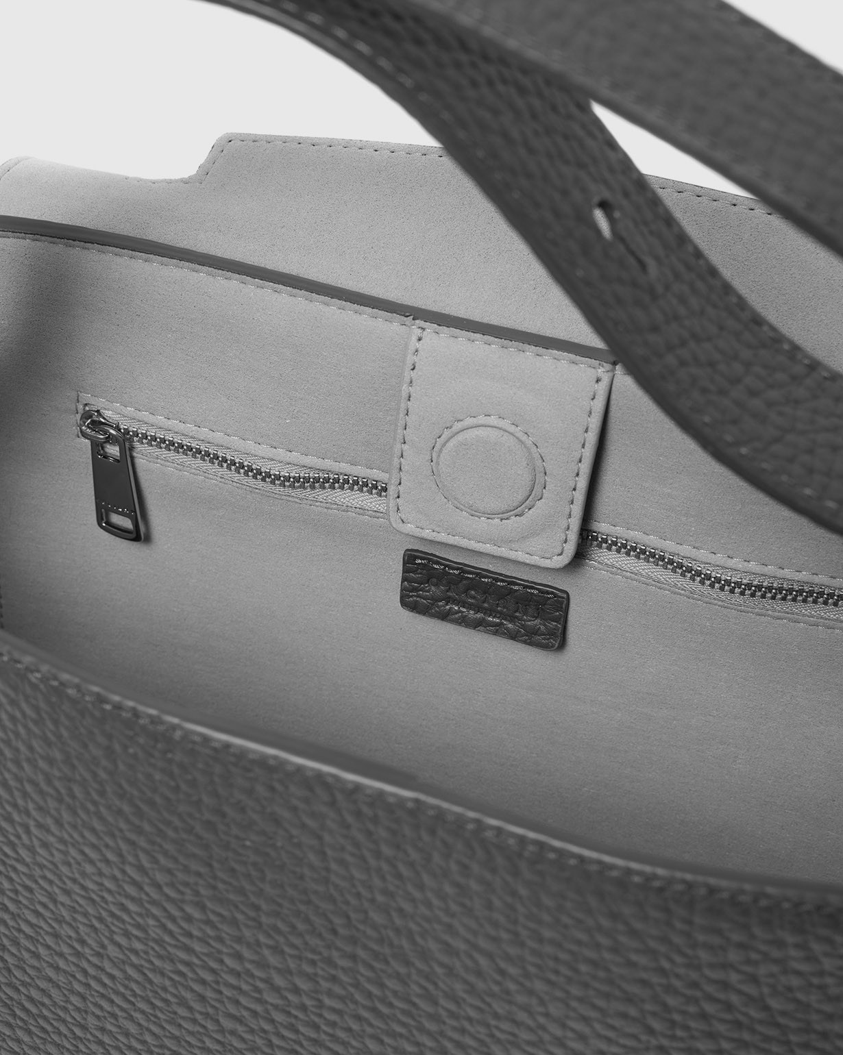 La morbida pelle martellata e l'apertura a scomparsa consentono di accedere comodamente all'interno della borsa senza sollevare la patta. La tasca interna con zip è personalizzabile in oro o argento con un massimo di 3 iniziali, per renderla un accessorio unico e prezioso.