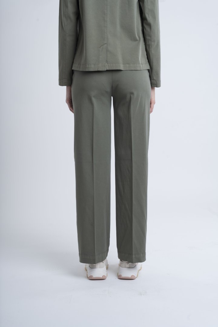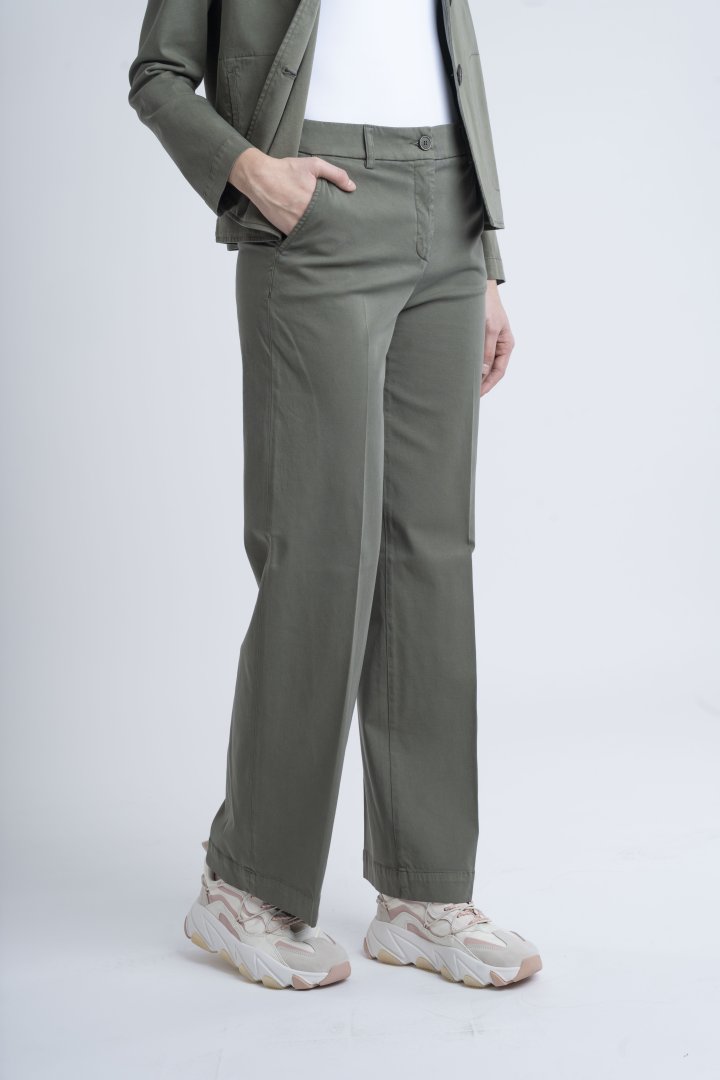 Pantalone in cotone con vita regolare, passanti per cintura e chiusura con bottone. Gamba dritta e linea ampia con lunghezza alla caviglia.