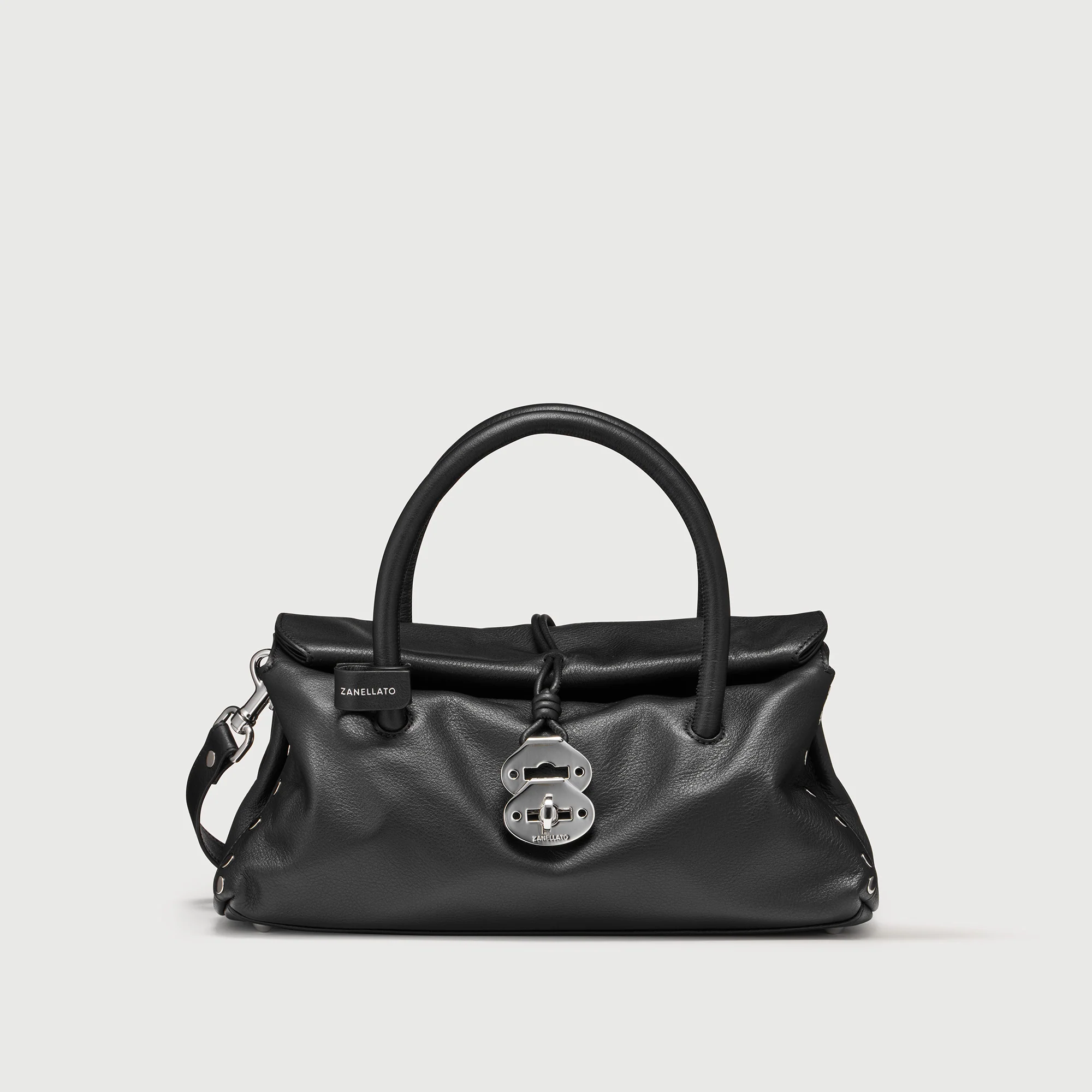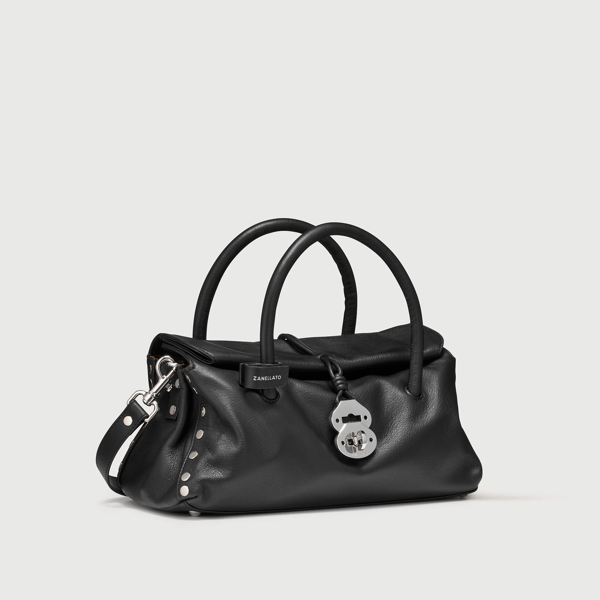 Realizzata in morbida pelle, è la borsa versatile che ti accompagnerà dal meeting in ufficio al brunch con le amiche. La chiusura roll-top magnetica e i nastrini tubolari con fibbia twist-lock creano un design iconico e funzionale. La tracolla regolabile e removibile ti permette di adattarla ad ogni outfit, mentre la tasca interna di organizzare al meglio tutto ciò che ti serve. Scegli la borsa Dotta® firmata Zanellato: piccolo formato, grande stile.