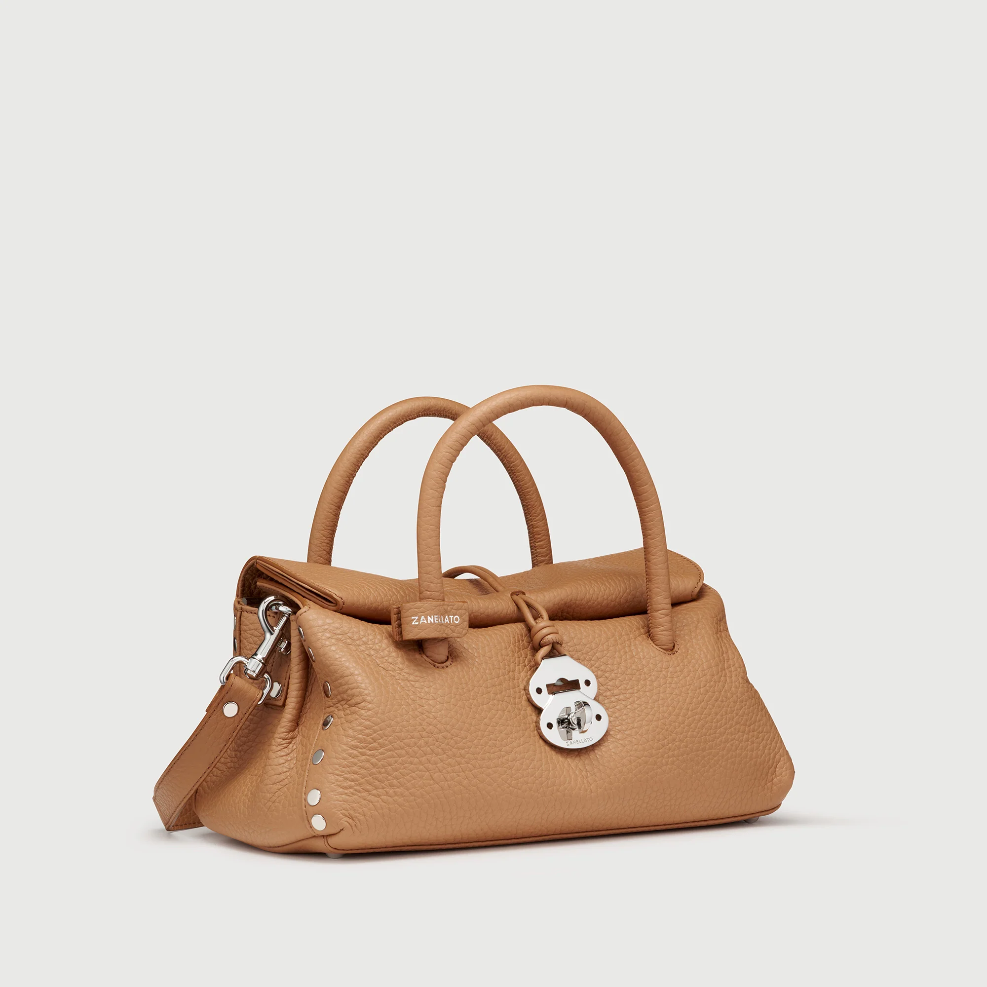 Realizzata in morbida pelle, è la borsa versatile che ti accompagnerà dal meeting in ufficio al brunch con le amiche. La chiusura roll-top magnetica e i nastrini tubolari con fibbia twist-lock creano un design iconico e funzionale. La tracolla regolabile e removibile ti permette di adattarla ad ogni outfit, mentre la tasca interna di organizzare al meglio tutto ciò che ti serve. Scegli la borsa Dotta® firmata Zanellato: piccolo formato, grande stile.