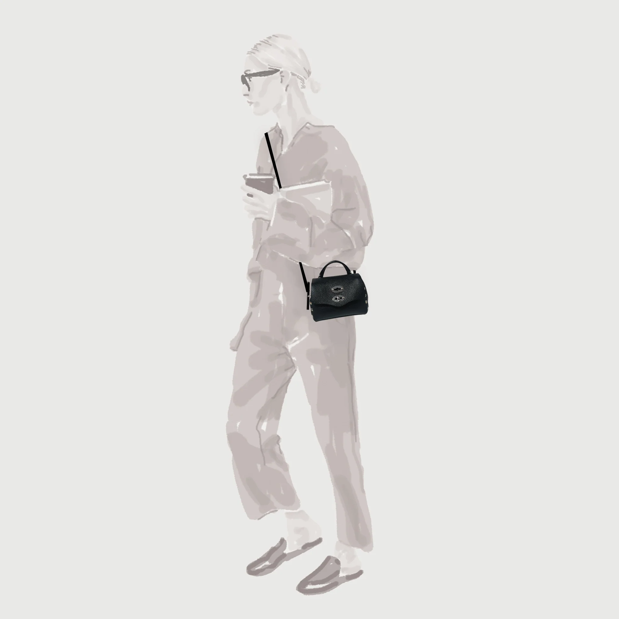 Postina®, icona della Maison, caratterizzata dalla doppia chiusura e dalla sua grande versatilità può essere indossata a mano, a spalla o a tracolla.
