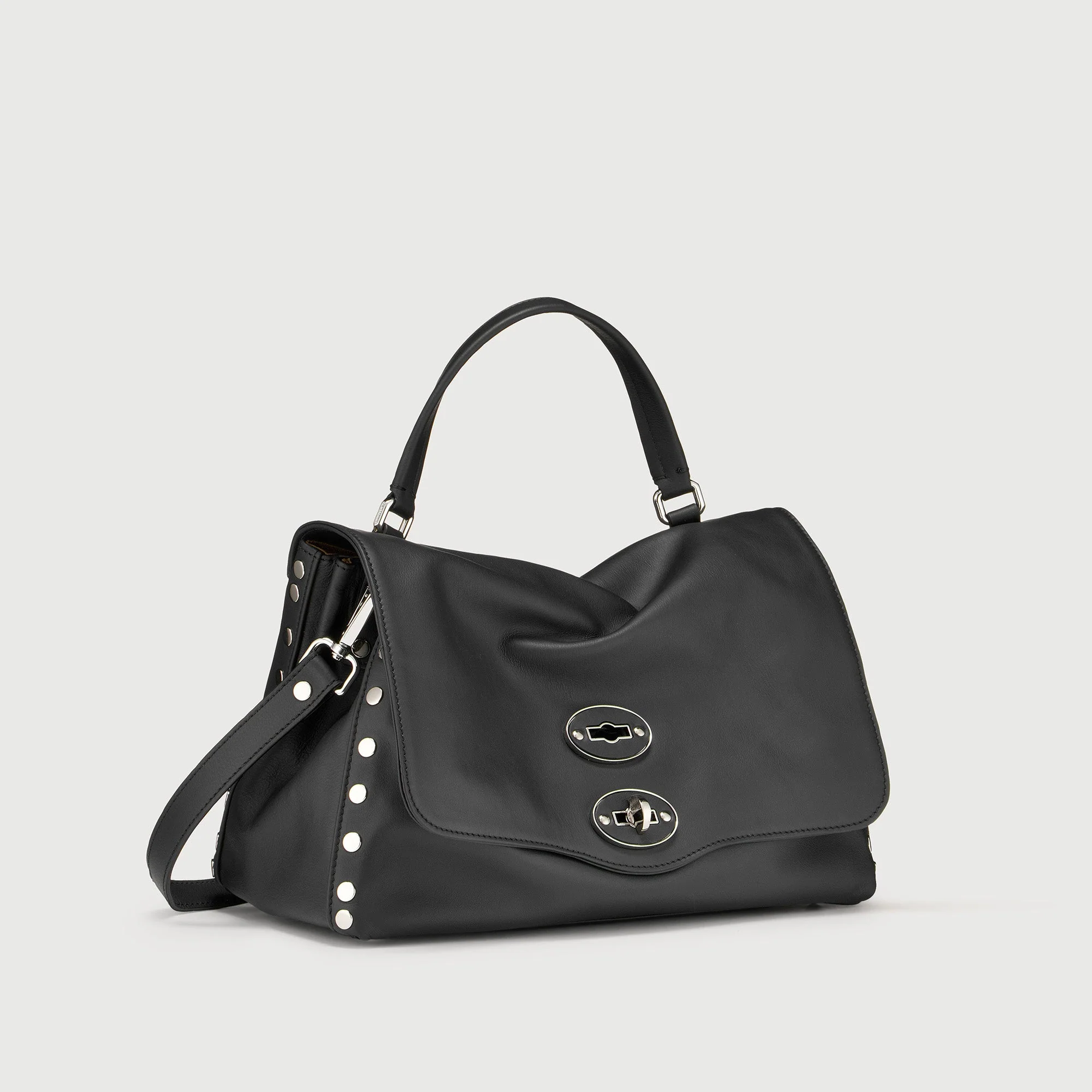 BORSA POSTINA® SMALL IN PELLE LISCIA BLACK LAVAGNA