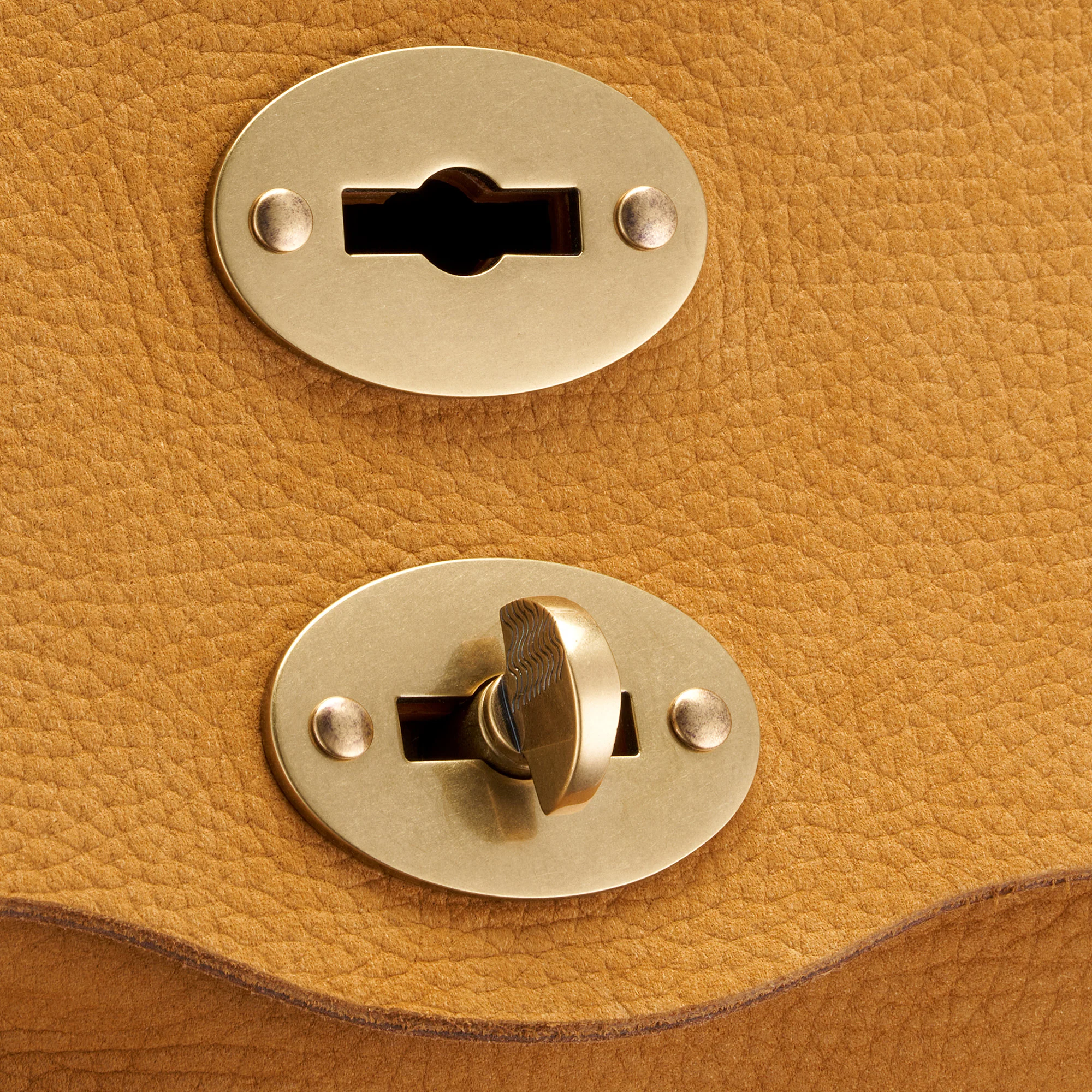 Il lusso contemporaneo si esprime al meglio in questa borsetta Postina®. Lavorato in pelle nabuk dalla texture supersoft, granulosa e morbida, questo piccolo capolavoro artigianale presenta una silhouette essenziale impreziosita dai riflessi della doppia chiusura a girello e delle borchie laterali. Lo spazio interno è sfoderato, dotato di una tasca dove riporre comodamente i tuoi effetti personali. La tracolla in pelle regolabile aggiunge un tocco di versatilità a questa borsa piccola firmata Zanellato.